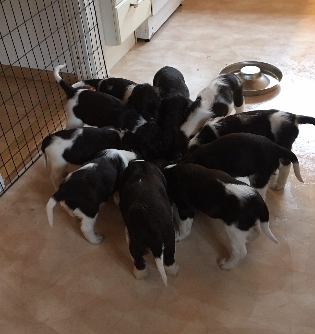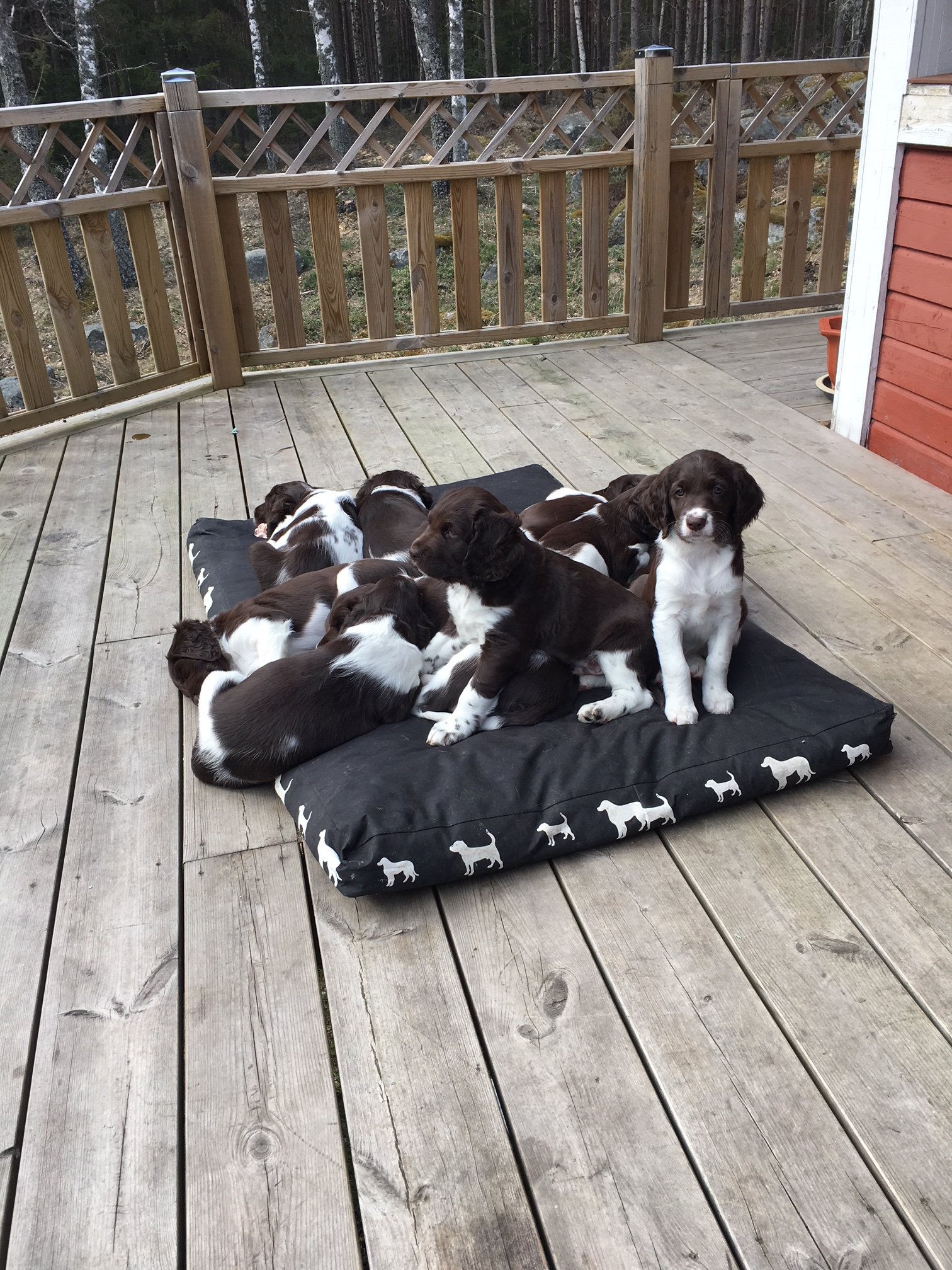 På juldagen 2016 åkte vi till Finland för att para Vilja. En nätt liten tur på knappt 300 mil och resultatet kom 26 februari. Då födde Vilja återigen en mastodontkull, hela 10 valpar. Fem tikar och fem hanhundar, stora var de också. Vilja bar runt på valpar som tillsammans vägde över 4 kg, helt otroligt. Sen följde besök av valpköpare och det är alltid lika spännande att se vem som passar för vem. I slutet av maj lämnade de flesta oss. Vi hade förmånen att ha Nalle och Jonsson någon vecka extra.