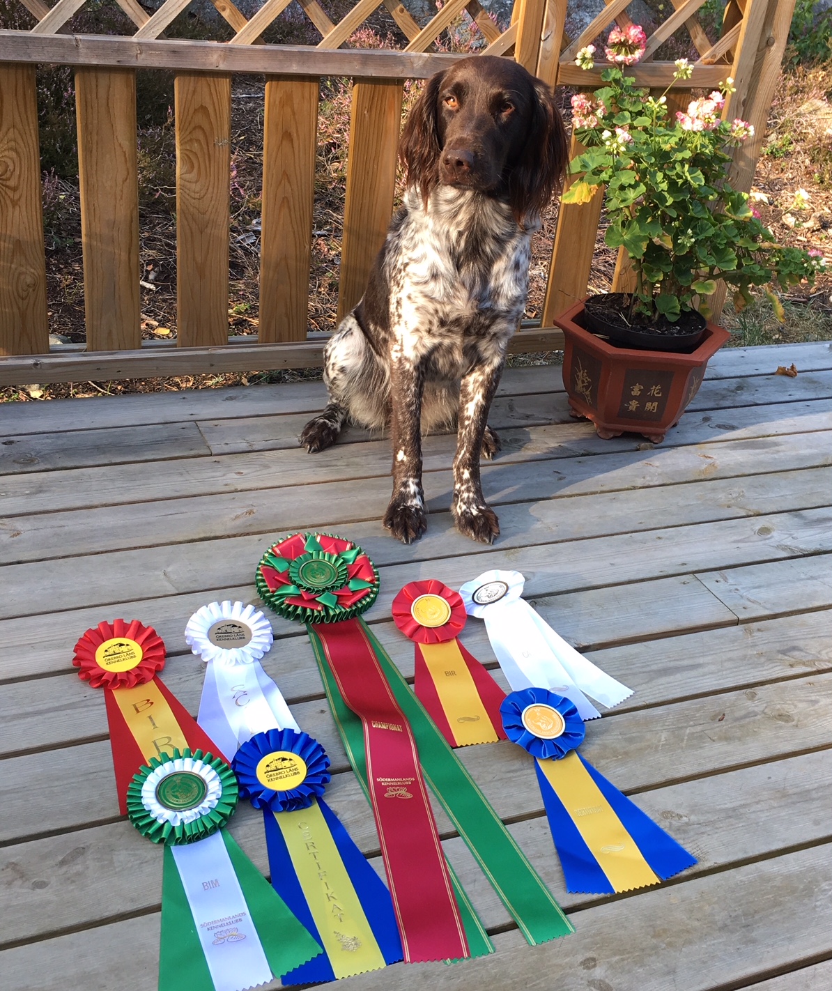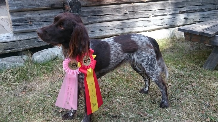 Kenneln har också fått sin första champion, det är Tindra som efter en väldigt lyckad utställningsserie i somras fick ihop de tre CK som behövs tillsammans med ett förstapris i jaktklass sedan tidigare.
